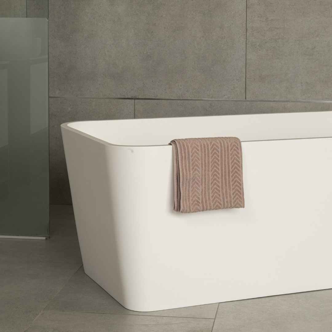 Bañera 100% materialidad Orastone, piedra sintética no porosa, resistente y reparable. Diseño elegante, premium y exclusivo. Acabado mate, larga vida útil y un look & feel inigualable.