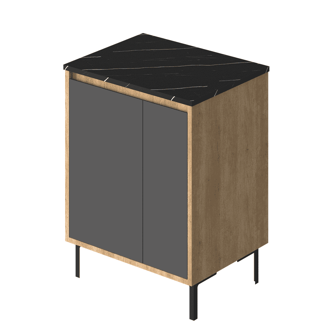 Modelo de apoyo con puertas y patas metálicas, un diseño industrial que brinda máxima funcionalidad y estilo.