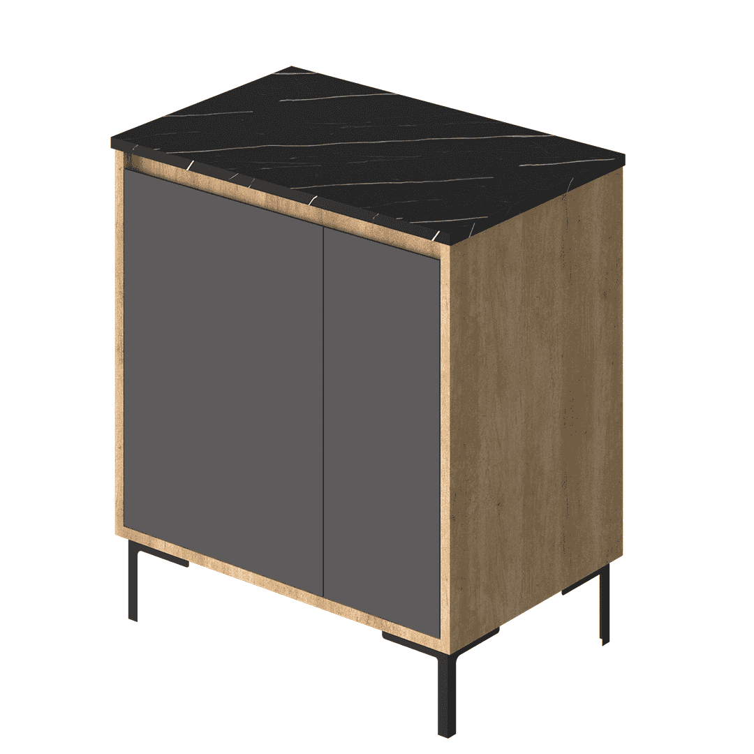 Modelo de apoyo con puertas y patas metálicas, un diseño industrial que brinda máxima funcionalidad y estilo.