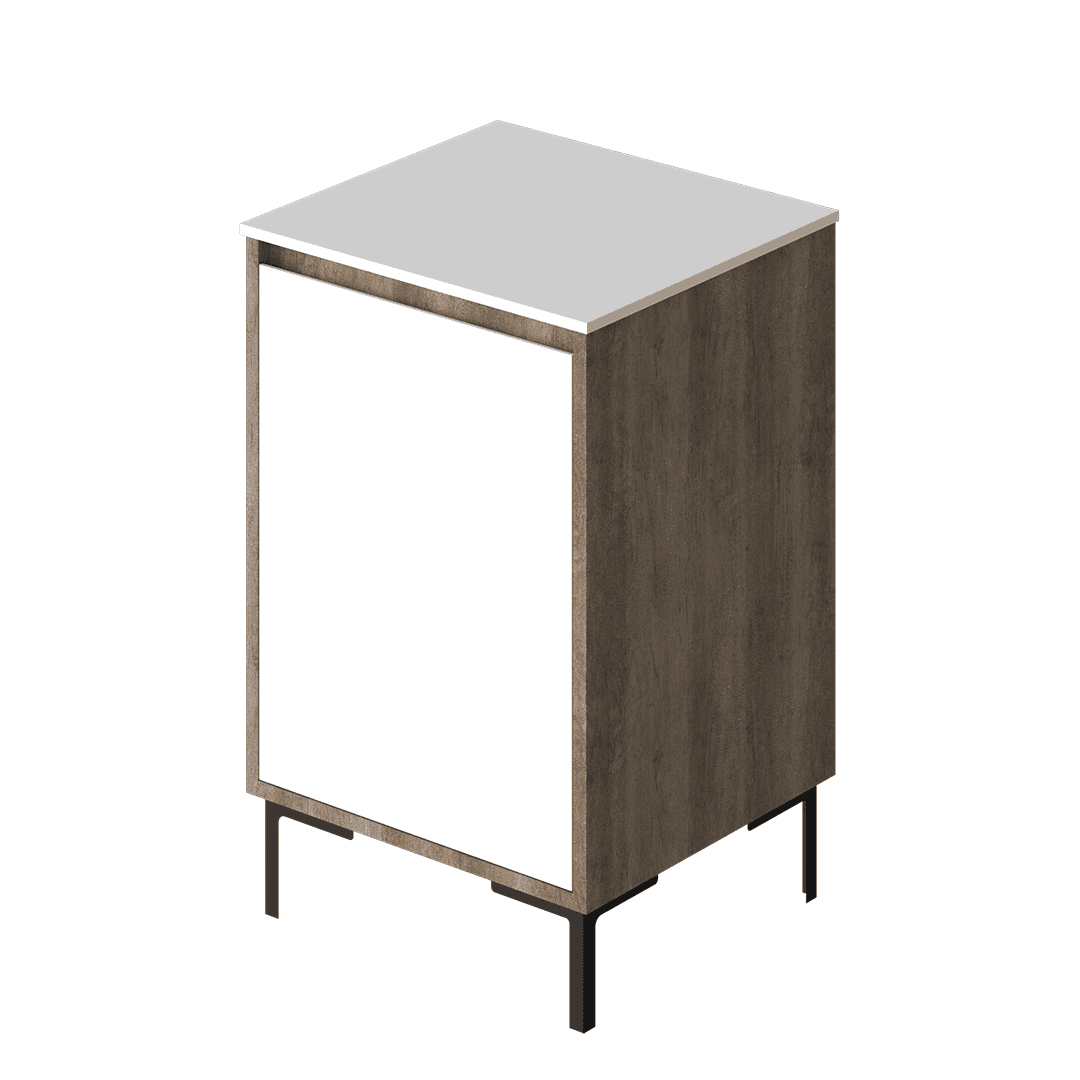 Modelo de apoyo con puertas y patas metálicas, un diseño industrial que brinda máxima funcionalidad y estilo.