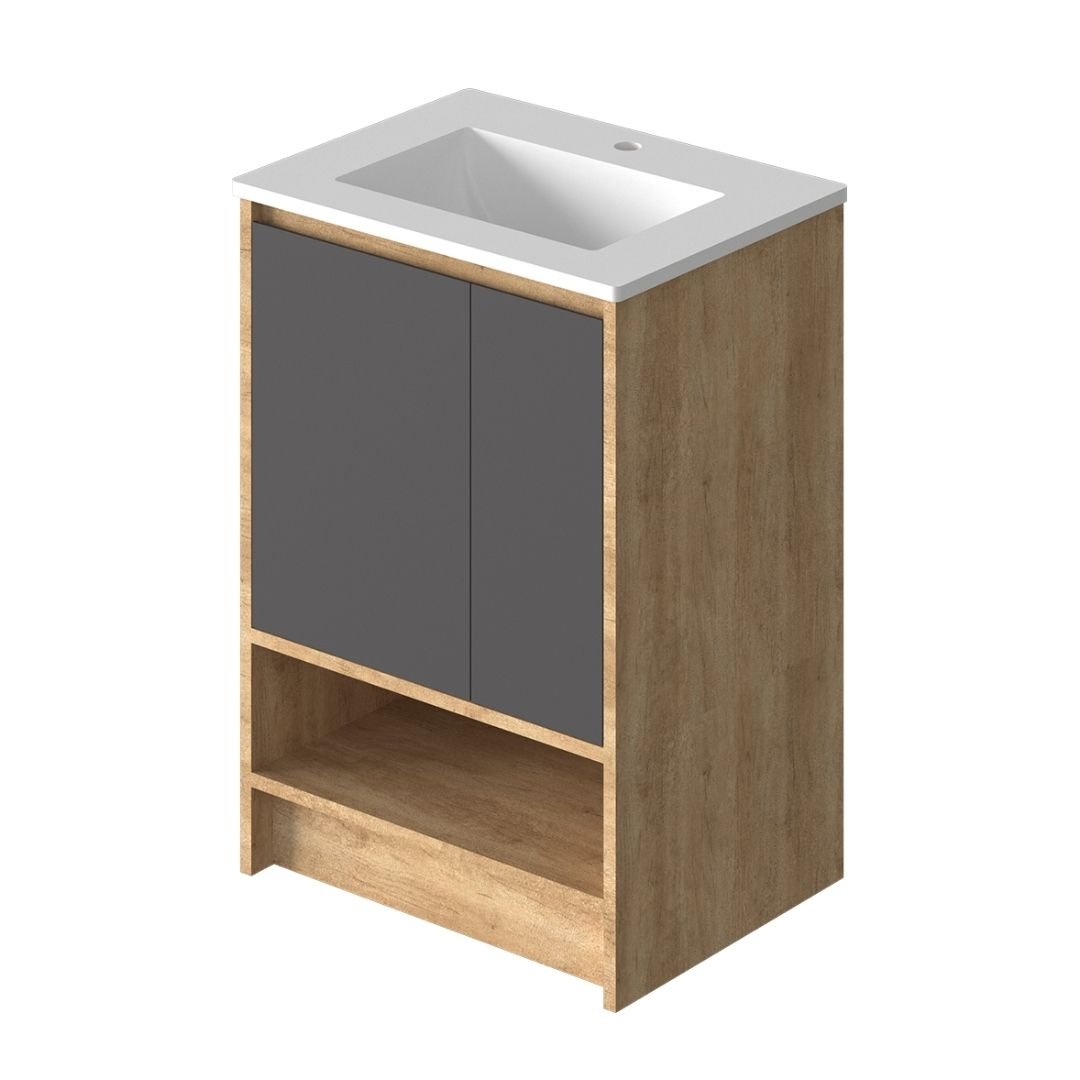 Vanitory Classic Legno Giorno 60 cm – Frente Negro con bacha integrada